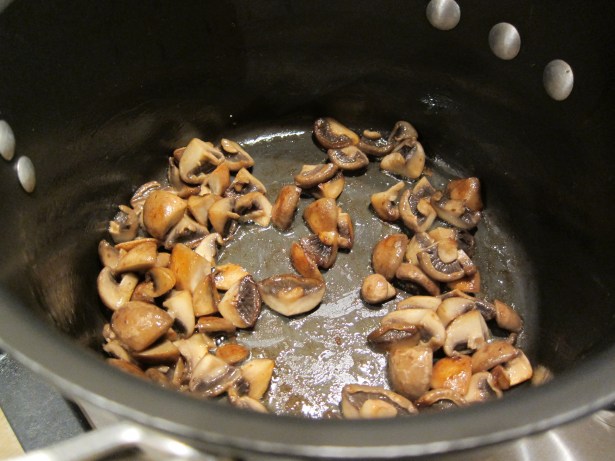 - In a small stock pot or dutch oven, brown the mushrooms in the butter; remove and put aside