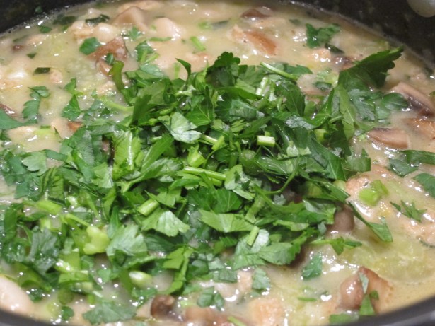- Stir in the soy protein, mushrooms and parsley; let stand for 10 minutes