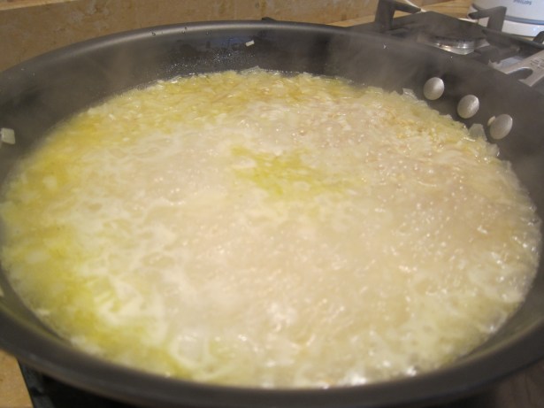 5. Once the wine has been absorbed, then add the stock 1 cup at a time, allowing most of it to absorb before adding the next