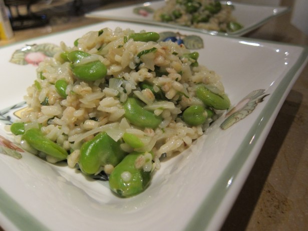 What’s so great about Risotto?  You can put ANYTHING in it…well almost anything.  All of the spring vegetables are inspiring me to make things green, like fava beans and sweet peas and snow peas.  I use a Giada DeLaurentiis recipe for basic risotto.  These fava beans can be sub’d for the sweet peas you might have on hand now as well.   I am really just posting this as a reminder of things we can do with all of those yummy green items at the market now.